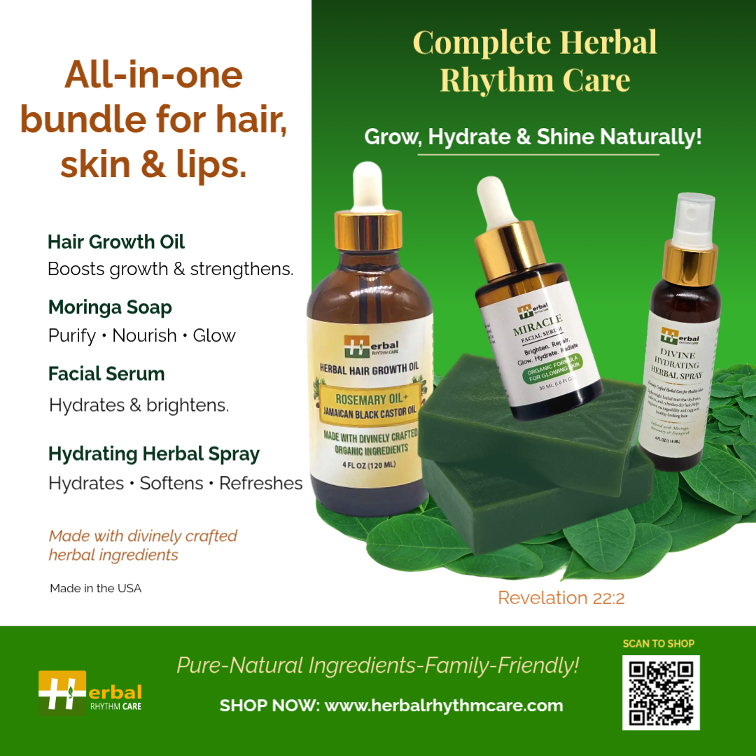 Pamper yourself from head to toe with our Herbal Self-Care Bundle, a nourishing collection of all-natural essentials designed to refresh, repair, and restore. Each product is handmade with God-given ingredients, safe for all skin and hair types, and gentle enough for the whole family.